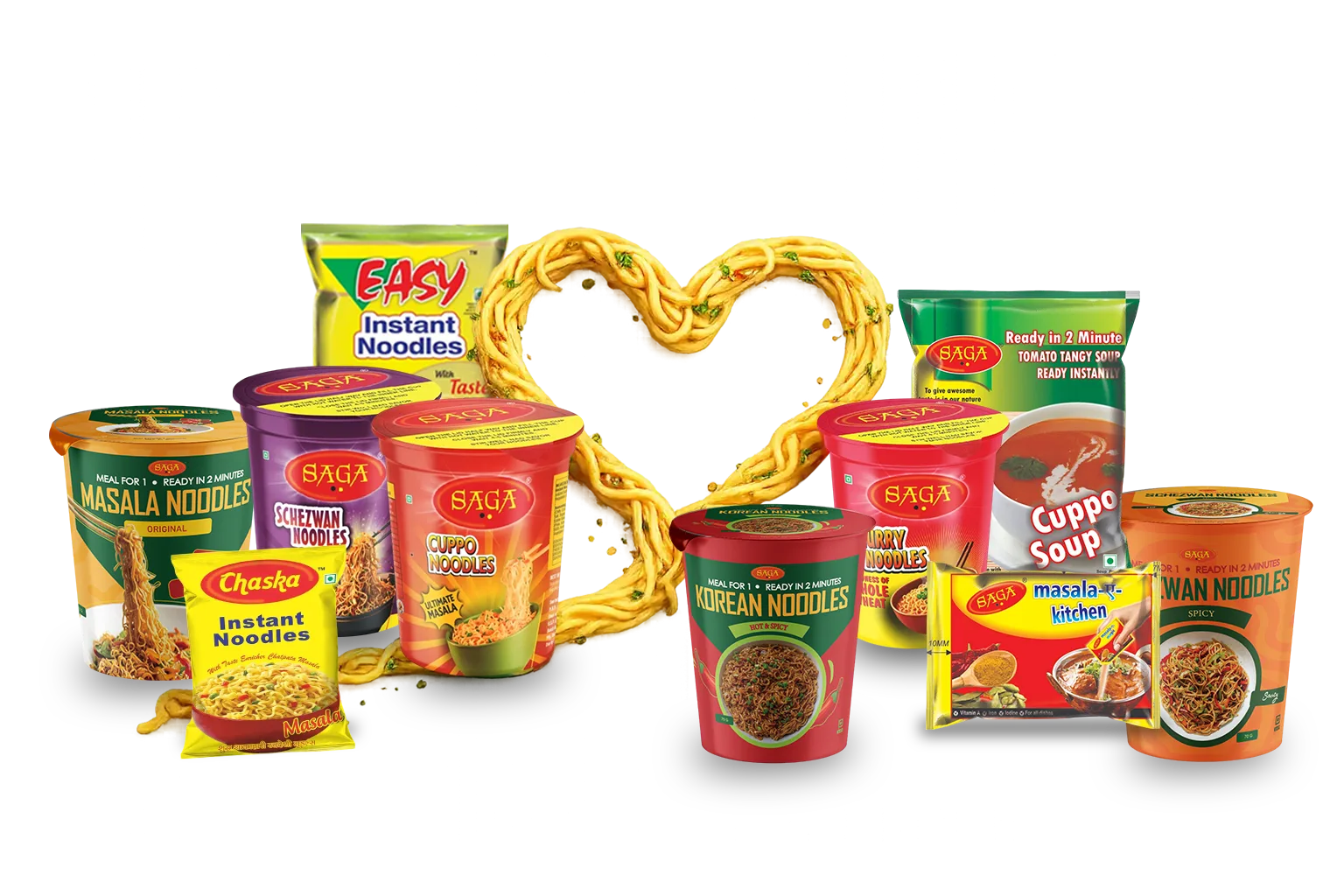 Ready-to-cook and eat products including packed Hakka noodles, instant noodles, tomato ketchup, soups and more.